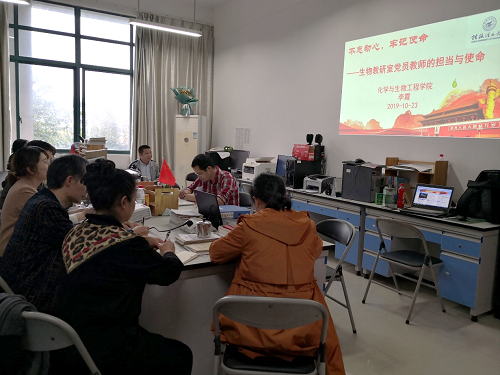 “不忘初心、牢记使命”主题教育的部署,2019年10月23日下午,李霞副院长走进生物工程教工党支部,为支部全体党员上了一堂题为“生物教研室党员教师的担当与使命”的党课。