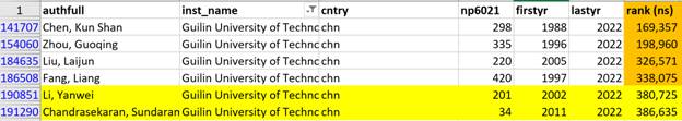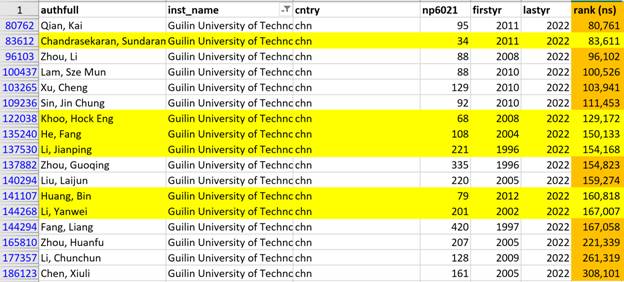 桂林理工大学入选2022全球2%顶尖科学家“年度影响力”榜单名单
