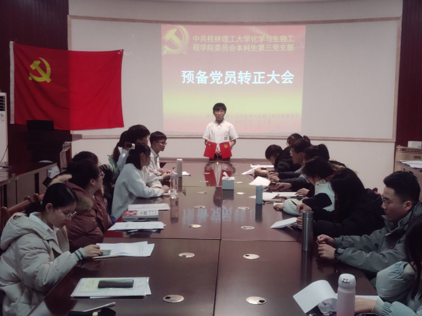 导航痕迹 当前位置: pc加拿大28 >> 党建工作 >> 党建工作 >> 正文 【党员发展】PC加拿大28 本科生第三党支部召开预备党员转正大会 作者:熊艳 李明 发布日期:2021-12-24 浏览次数: 12月23日,PC加拿大28 本科生第三党支部于12217召开预备党员转正大会。本次会议由支部书记熊艳主持,支部全体党员同志参加。 会议伊始,支部书记熊艳介绍会议流程,宣布会议开始。随后,吴汇民等8名中共预备党员依次上台就过去一年来自身在思想、学习、工作和生活四个方面的基本情况向大会做出汇报。紧接着,与会党员对他们的汇报进行提问并发表意见,指出他们存在的一些缺点和不足,希望他们继续加强对理论知识的学习,提高自身的能力。最后,到会有表决权的党员对是否同意预备党员转正进行无记名投票,一致同意吴汇民等8名同志转正,并将票决结果形成支部大会决议。 在秉承公平公正的原则下,本次转正大会的顺利召开,为我支部壮大了队伍,也为今后党支部建设打下了更坚实的基础,希望转正的同志接下来能够继续严格要求自己,积极发挥党员的先锋模范作用。 会议现场(一) 会议现场(二) 上一条:应化教工党支部开展以“查摆分析问题,推进2022年度国家自然科学基金项目申报” 为主题的党日活动 下一条:【党史学习教育】党风廉洁专题党课——全面从严治党、抓好党风廉政建设