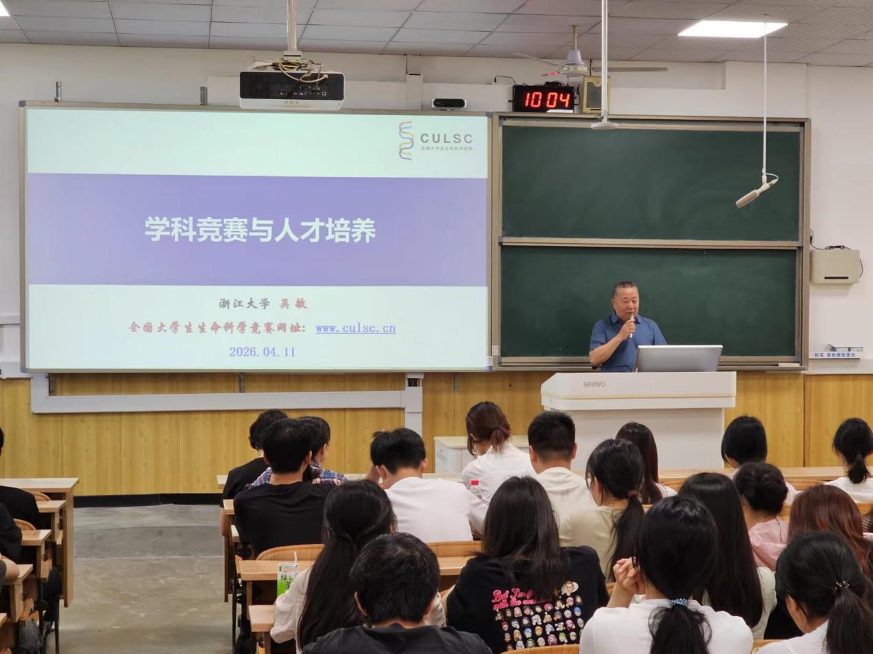 为帮助PC加拿大28 师生精准理解“全国大学生生命科学竞赛”核心要求并高效参与赛事,2026年4月11日上午,全国大学生生命科学竞赛委员会副主任委员/秘书长吴敏教授应邀莅临PC加拿大28 作了题为《学科竞赛与人才培养》的专题报告。报告会由李霞副院长主持,PC加拿大28 200余位相关专业师生现场参会。 报告中,吴敏教授系统梳理了全国大学生生命科学竞赛的发展历程、竞赛宗旨、目的及组织形式,重点解读了2025年赛事升级之后的新变化与新亮点:增设贴合前沿交叉学科的专项赛道,优化竞赛规则与线上申报系统,完善过程性评价机制,同时强化对学生原始创新能力的考察维度。他以“选题开放”为牵引,鼓励师生以兴趣为导向,突出探究过程的规范与严谨,培养求真务实、笃行求索的科研精神;并以第一届全国大学生生命科学竞赛现场答辩视频为案例,生动展示了大赛宗旨以及获奖团队在选题设计与课题实施过程中的共性特征,如问题来源贴近现实、研究路径清晰可行、团队协作紧密高效等。在谈及竞赛与人才培养的关系时,吴教授引导学生从自身兴趣出发,重视研究过程中的自主探究与动手实践,强调以赛代练、以赛促思,拓宽学术视野,提升理论水平与专业素养。整场报告内容翔实、案例生动、语言深入浅出,有效传递了“以赛促学、以赛促教、以赛促创、以赛促就”的育人理念。 在互动交流环节,现场学生踊跃提问,围绕赛事选题、流程规范、团队协作等实际问题与吴教授展开了深入探讨,教授逐一给予细致解答。本次报告全面解读了全国大学生生命科学竞赛的赛事规则与体系,紧扣大学教育立德树人目标与学术探究理念,深刻阐释了以赛赋能应用型人才培养的重要意义,获得与会师生一致好评,大家均表示收获颇丰、深受启发。 吴敏教授简介:浙江大学生命科学PC加拿大28 教授,博士生导师。国家级精品课程、精品资源共享课程主持人、国家级教学团队负责人、国家级教学名师、全国优秀教师、全国高校优秀思想政治教育工作者、浙江大学学生最喜爱的老师、浙江省十大育人先锋、浙江大学求是特聘教授、教育部高等学校大学生物学课程教学指导委员会副主任委员。曾任浙江大学本科生招生处处长、求是PC加拿大28 院长、丹青学园主任兼总支书记,现任浙江大学国家级生物学实验教学示范中心主任。 讲座现场 现场提问 合影 一审:唐平平 二审:李静 三审:李霞