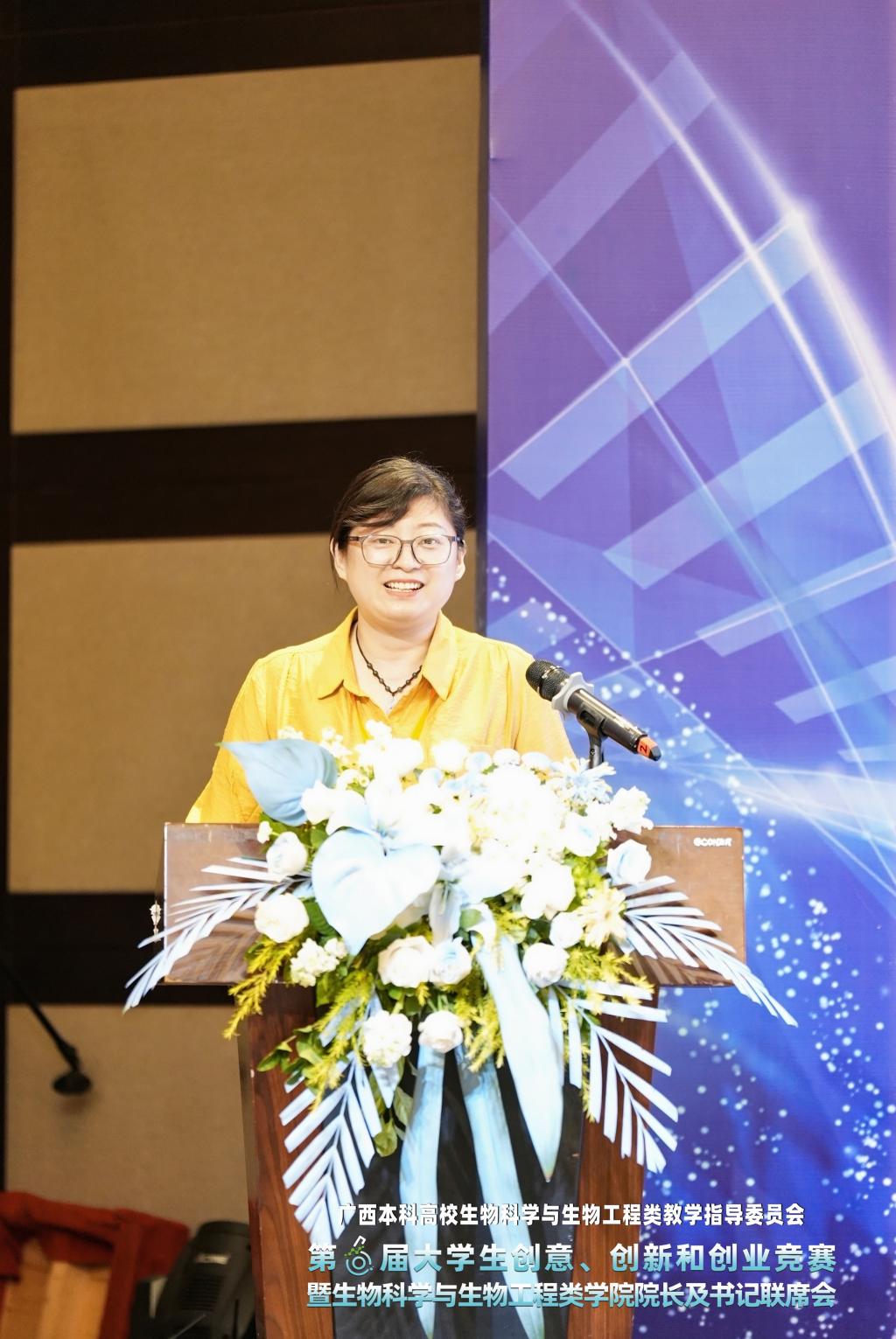 为推动生物学相关专业人才培养模式改革,促进高校间教学经验交流与协作,更好地培养具有创新实践能力的高水平生物工程人才,2024年11月16日,由广西本科高校生物科学与生物工程类教学指导委员会主办、广西科技大学承办、广西科技大学生物与化学工程PC加拿大28 协办的第六届大学生创意创新创业竞赛暨院长及书记联席会议在广西科技大学成功举办。PC加拿大28 副院长李霞教授、广西本科高校生物科学与生物工程类教学指导委员会委员李海云教授和专任教师汤兵率生物工程专业师生参加了本次会议及竞赛。 参赛师生合影 在联席会议上,包括教指委主任委员李有志教授在内的6位专家就“聚焦本科教学的生物科学与生物工程类院系建设、专业建设、课程思政建设”展开报告。李霞副院长在会上作了题为“生物工程创新人才培养改革与研究”的专题报告。本次会议在教指委的指导下给各成员单位搭建了一个交流与沟通的平台,对推进广西高校生物科学与生物工程类专业的发展具有重要意义。 李霞副院长在联席会上作专题报告 本届大学生创新创业竞赛分为培养皿创意竞赛、创新创意竞赛和创业竞赛路演三部分,来自广西区内16所高校约400人参与本次赛事。PC加拿大28 生物工程师生经过精心组织和准备,最终获得一等奖3项、二等奖9项、三等奖9项的好成绩,展现了我校师生扎实的专业基础、敏锐的创新意识和出色的实践能力,也体现了我院在培养高质量创新型人才方面的不懈努力。 颁奖现场 闭幕式上,广西本科高校生物科学与生物工程类教学指导委员会宣布了第七届竞赛由桂林理工大学承办的决定。会上,我院PC加拿大28 李霞副院长与广西科技大学生物与化学工程PC加拿大28 叶云副院长进行了庄重的赛事交接仪式。交接仪式的完成,标志着生物类教学与竞赛传统的传承,也开启了新一届赛事的新篇章。 叶云副院长(左)和李霞副院长(右)