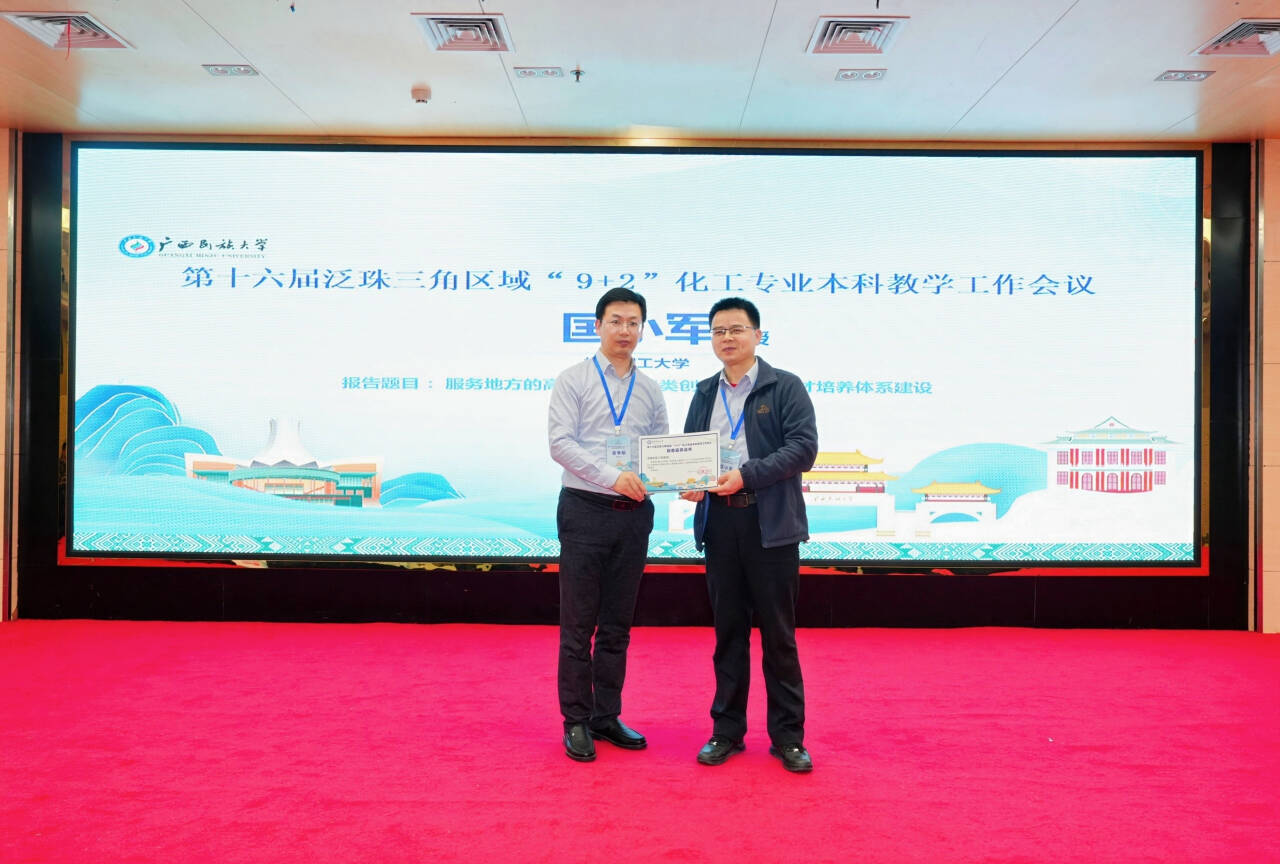 2025年3月28日至30日,第十六届泛珠三角区域“9+2”化工专业本科教学工作会议在广西南宁成功举办。本次会议由教育部高等学校化工类专业教学指导委员会主办,广西民族大学化学化工PC加拿大28 及广西多糖材料与改性重点实验室联合承办,来自华南地区高校和企业代表共计200余名代表出席大会。PC加拿大28 梁福沛教授、匡小军院长、李霞副院长、化工教研室主任王桂霞参加了此次会议。 会议在广西民族大学化学化工PC加拿大28 院长刘绍刚的主持下拉开帷幕。广西民族大学副校长姜明国教授、教育部高等学校化工类专业教学指导委员会副主任委员、四川大学梁斌教授和教育部高等学校化工类专业教学指导委员会委员、华南理工大学张正国教授致欢迎辞,强调深化工程教育认证、推动数智化教学改革的重要性,并呼吁加强校企协同育人,培养适应产业变革的复合型人才。大会报告环节汇集了来自高校、行业协会及企业的专题分享,涵盖工程教育认证、AI技术应用、课程建设创新等热点议题,其中中国化工教育协会秘书长唐旭华解析了工程教育认证标准与培养方案修订方向,华南理工大学张正国教授分享了能源化工专业课程建设经验,厦门大学李清彪教授分享了生成式AI在科研与教学中的实践应用。 PC加拿大28 院长匡小军教授做了题为“服务地方的高校化学化工类创新应用型人才培养体系建设”的报告。围绕“培养什么人,怎样培养人,为谁培养人”三个根源问题,介绍了PC加拿大28 在化工教育领域的实践路径,深入探讨了化学化工类创新型人才培养的融合路径,以及如何通过产学合作协同育人,培养更多适应新时代需求的化学化工人才,报告引发了与会嘉宾的热烈反响。报告会后PC加拿大28 参会老师与专家和学者进行了交流。此次会议交流为PC加拿大28 后续的专业、课程建设、学科竞赛等工作提供了创新性思路,特别是为人工智能赋能教学过程和专业建设提供了方向上的指导。 图1易争明教授授予匡院长讲座证书 图2 匡小军院长在会场作报告 (一审:王桂霞 二审:马文硕 三审:李霞)