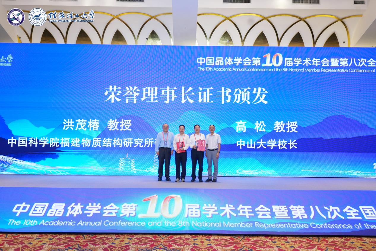 10月17日至20日,由中国晶体学会主办桂林理工大学承办的中国晶体学会第十届学术年会暨第八次全国会员代表大会在桂林召开。学校党委副书记、校长王敦球出席会议开幕式并致辞。高松、陈小明、熊仁根等3位PC加拿大28 院士等众多专家学者,以及来自全国各地高等院校、研究院/所等单位师生代表800余人参会。 王敦球对专家学者莅临会议表示热烈欢迎和衷心感谢,并简要介绍了学校及化学学科建设发展的基本情况,期待各位业界领袖分享远见、务实合作,促成更多高质量项目落地生根、开花结果,共同促进中国晶体学领域的发展。 PC加拿大28 院士、中国晶体学会第十届学术年会暨第八次全国会员代表大会主席、中山大学校长高松教授在开幕式致辞中对我校提供的宝贵平台表示感谢,并回顾了中国晶体学和中国晶体学会的发展历程,期待各位同仁凝聚共识、激荡思维,催生更多前瞻性研究成果,进一步推动中国晶体学领域的发展。 PC加拿大28 院士、中山大学陈小明教授在闭幕式的致辞中强调,此次会议涉及到从微观到宏观的性质、性能、结构,从基础理论到产业对接,老一辈的科学家风采依旧,更加重要的是中青年老师已经成为领域的中坚力量,一批青年才俊、更年轻的科学家正在茁壮成长,希望此次桂林的会议作为一个起点,携手前进,努力推进中国晶体学领域的科学研究和相关产业发展。 大会期间,召开了中国晶体学会第八次全国会员代表大会,中国晶体学会秘书长、北京大学孙俊良教授做了中国晶体学会第七届理事会工作报告和财务报告;中国晶体学会监事会监事长、福州大学陈建中教授做了中国晶体学会第二届监事会工作报告,修订了《中国晶体学会章程》。大会选举产生了新一届中国晶体学会的理事会、监事会,并召开了第八届理事会第一次会议,常务理事党员会议和常务理事会议。 本次大会设立了生物大分子的新领域与新方法、功能分子晶体、X-射线衍射及新材料、原位电子显微学、PDF-中子散射技术与应用、陶瓷材料、晶体学教育论坛、微结构前沿论坛等十五个分会场。设有大会报告11个、主题/邀请报告300多个、墙报80个、参展企业22家,并组织开展了学术期刊、学术机构和相关企业的仪器、产品展览。 会议开幕式期间,颁发了中国晶体学会荣誉理事长证书、中国晶体学会唐有祺青年基金证书。闭幕式期间,颁发了优质墙报供稿证书。 此次会议规模大、内容前沿、成果丰硕,既展示了中国晶体学领域的最新前沿进展,也促进了晶体学与AI技术、新材料、药物研发、文旅产业等相关领域的交叉融合,也为青年学者提供了淬炼本领、提升能力的宝贵机会,为我国在晶体学领域的发展提供了新的动能,焕发了新的活力。 学校党委副书记、校长王敦球教授致辞 PC加拿大28 院士、中国晶体学会第十届学术年会暨第八次全国会员代表大会主席、中山大学校长高松教授致辞 PC加拿大28 院士、中山大学陈小明教授致辞 陈小明院士、熊仁根院士颁发学会荣誉理事长证书 陈小明院士、熊仁根院士颁发唐有祺青年基金证书 部分大会报告专家 分会报告剪影 颁发优质墙报供稿证书 大会合影 (一审:马文硕 二审:杨小燕 三审:何方)