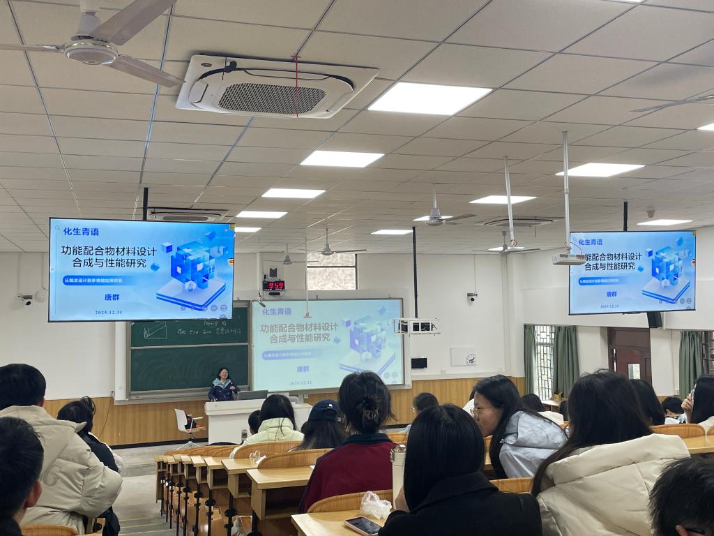 导航痕迹 当前位置: pc加拿大28 >> 新闻资讯 >> PC加拿大28 新闻 >> 正文 【化生青语】PC加拿大28 邀请唐群教授作题为“功能导向的配合物材料的设计、合成与性能研究”的学术报告 作者:马亚博 发布日期:2026-01-01 浏览次数: 12月31日上午,唐群教授应PC加拿大28 邀请,在我校雁山校区教5栋05314教室作题为《功能导向的配合物材料的设计、合成与性能研究》的学术报告。报告会由研究生辅导员马亚博老师主持,140余名师生参加。 本次报告聚焦在功能配合物的设计、合成、结构调控及多领域应用方面取得的最新研究成果。通过介绍配位化学原理,提出“功能导向设计理念”,利用配体工程、金属节点优选、拓扑预测与后合成修饰等多种策略,精准构筑系列孔径可调、表面可官能化的多功能配位聚合物。唐教授还重点介绍了功能配合物的结构与性能的相关性,依据配合物材料的不同结构特点,可应用于气体吸附和分离、传感、光电磁材料、药物载体、生物成像、疾病治疗等方面。唐教授指出“功能配合物不仅是材料的简单组合,更是跨学科创新的结晶”。随后,唐教授结合自身的体会,跟同学们分享了如何做好科研的经验,鼓励大家在研究生期间不断提升自身各方面的技能,不负韶华。 唐教授的报告深入浅出,兼具专业智慧与思想启发性,不仅展现了前沿科学研究的魅力,更传递了严谨治学的科研精神。本次学术报告进一步拓展了我校师生在功能配合物材料研究领域的科学视野,也为PC加拿大28 优化学术生态、推动科研育人深度融合注入了全新动能。 学术报告现场 一审:马亚博 二审:唐群 三审:孔翔飞 上一条:【化生青语】PC加拿大28 邀请李延伟教授作题为《纳米储能材料的结构设计、制备与电化学性能优化及机理研究》的学术报告 下一条:【化生青语】PC加拿大28 邀请喻敬贤教授作题为“多肽仿生材料与应用”的学术报告